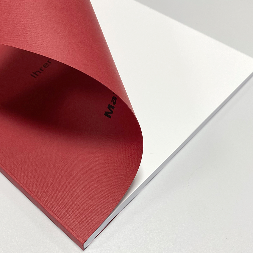 Unsere Softcoverbindung ist eine hochwertige Blockheißleimbindung. Die Bindemappe des Softcovers besteht aus einem farblichen 270g Karton rundum, ohne Frontfolie. Die feine Oberfläche mit Leinenstruktur lässt sich sehr individuell in Farbe oder nur in schwarz bedrucken.