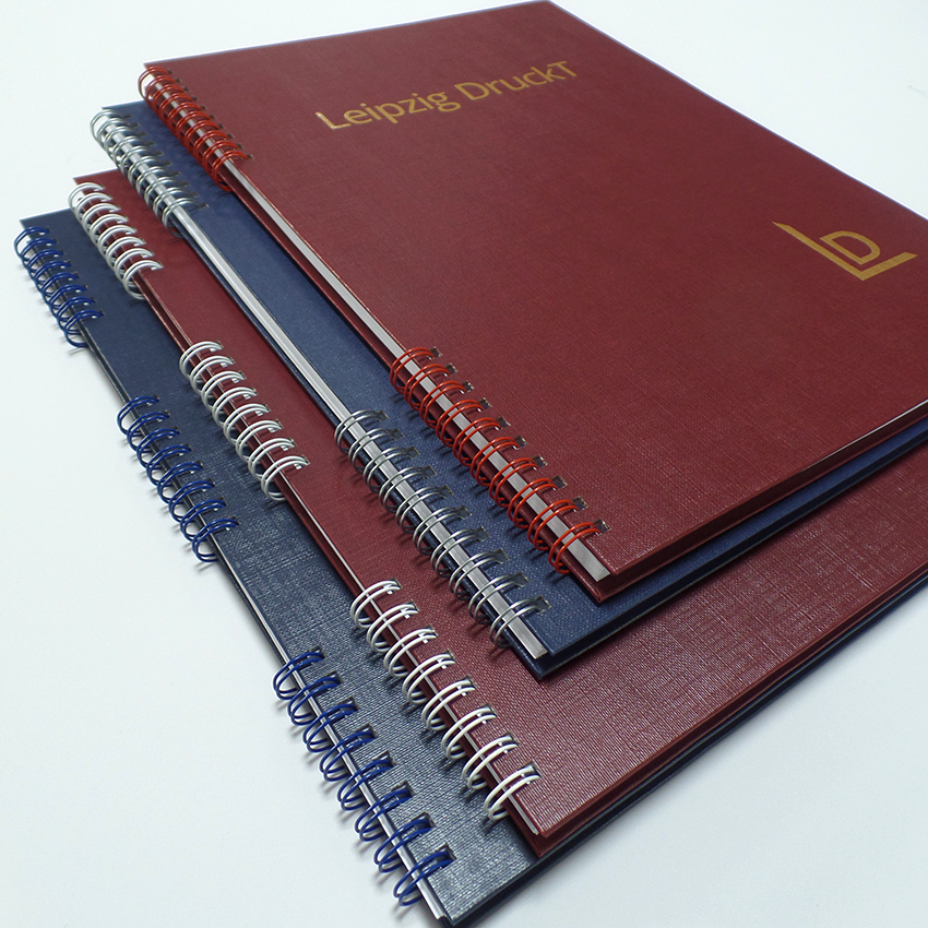 Unter dieser Kategorie können Sie Drucke im Hardcover mit Leinenstruktur und einer Drahtringbindung als Skip-Bindung bestellen. Diese Hardcoverplatten haben eine Leinenstruktur und somit ein sehr hochwertiges Erscheinungsbild. Die Oberfläche des Hardcovers ist matt lackiert, hässliche Fingerabdrücke werden so vermieden. Dieses Leinen ist äußerst strapazierfähig und langlebig. Bei dieser Art der Hardcoverbindung werden Ihre Drucke zwischen zwei Hardcoverplatten mit einer Drahtringbindung gebunden. Die Drahtringbindung bieten wir bei diesem Produkt als Skip-Bindung, entweder zwei- oder dreigeteilt an.