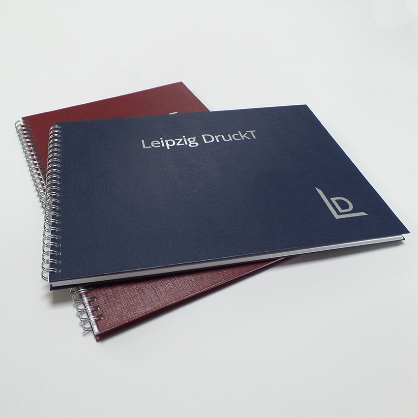 Unter dieser Kategorie können Sie Drucke im Hardcover mit Leinenstruktur und einer Drahtringbindung bestellen. Diese Hardcover Bindemappe hat eine Leinenstruktur und somit ein sehr hochwertiges Erscheinungsbild. Die Oberfläche des Hardcovers ist matt lackiert, hässliche Fingerabdrücke werden so vermieden. Dieses Leinen ist äußerst strapazierfähig und langlebig. Bei dieser Oberfläche der Bindemappe ist eine hochwertige Beschriftung in verschiedenen Farben möglich.