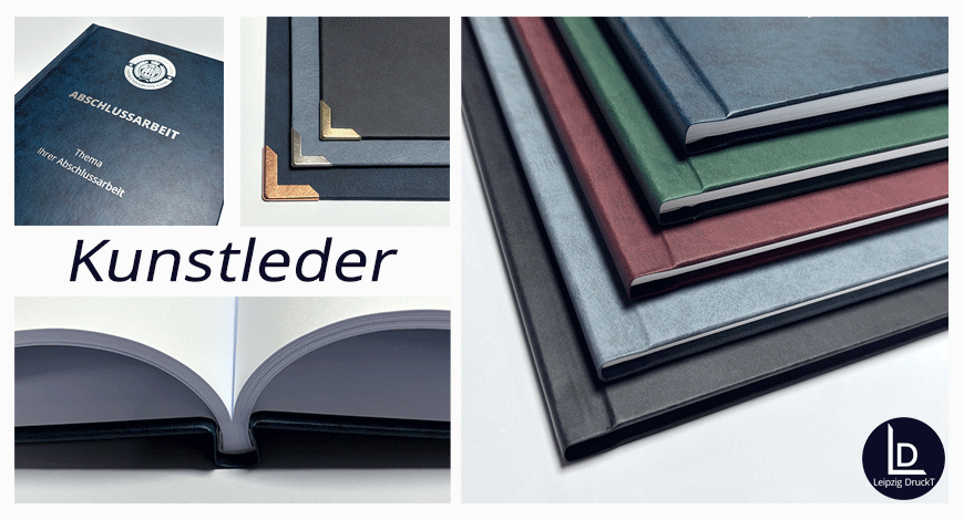 Diese Hardcover Bindemappe "Kunstleder" hat einen Einband mit einer Oberfläche aus sehr hochwertigem, exklusivem und glattem Kunstleder. Das Kunstleder ist leicht marmoriert und bietet somit ein sehr individuelles Auftreten. Das exklusive Erscheinungsbild der Bindemappe hebt sich von vielen anderen Mappen ab und es verleiht Ihren Abschlussarbeiten eine einmalige Note. Bei dieser Oberfläche ist ein ganzseitiger Coverdruck möglich, nähere Informationen zum Erstellen der Datei finden Sie unter dem Punkt "Information zum Druck".