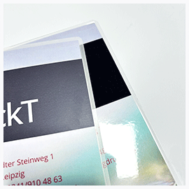 Im Anschluss werden die Drucke laminiert. Die Laminiertaschen gibt es mit matter und glänzender Oberflächen.