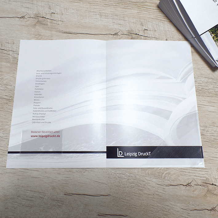Gedruckt werden Ihre Mappen auf verschiedenen Qualitätspapieren in den Grammaturen 250g/m2 oder 300g/m2. Somit ist jeder Druck gestochen Scharf mit originalgetreuen Farben.